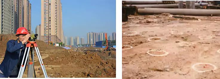 1. 测量放线:现场施工人员依据图纸拿着仪器在现场进行放线定位。